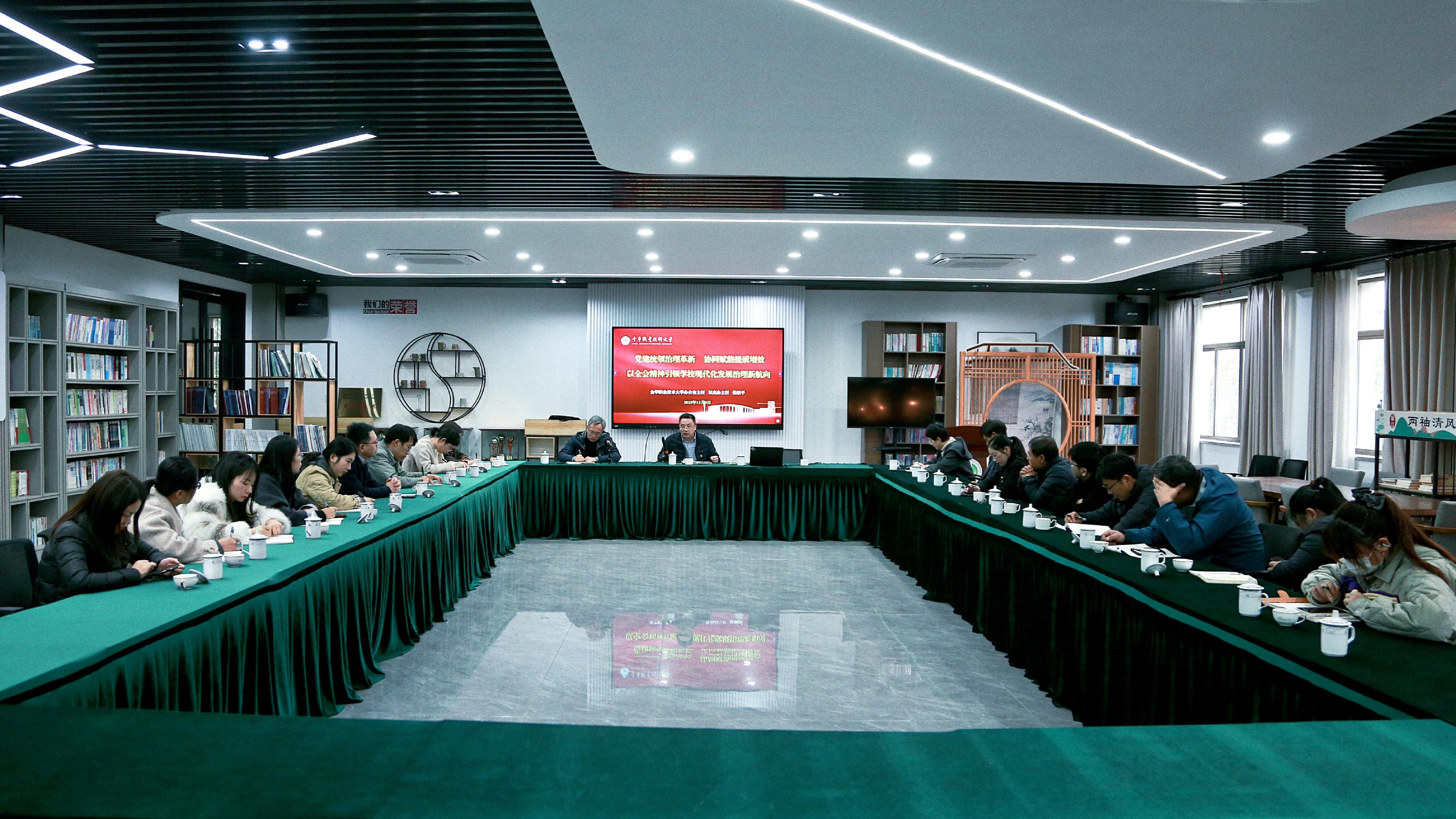 学习会上,学校办公室以“党建统领治理革新 协同赋能提质增效 以全会精神引领学校现代化发展治理新航向”为主题作全会精神宣讲。会上强调,全体党员要以新求质,面对新时代、新产业、新谋划,系统全面学、及时跟进学,提高政策把握精准度;要以人为本,根据学校职本建设和“新双高”建设要求,立足岗位实际,更好服务师生发展;要以制立规,办公室要加快统筹推进制度“废改立”工作,强化规矩意识,增强服务能力,提升服务质效。