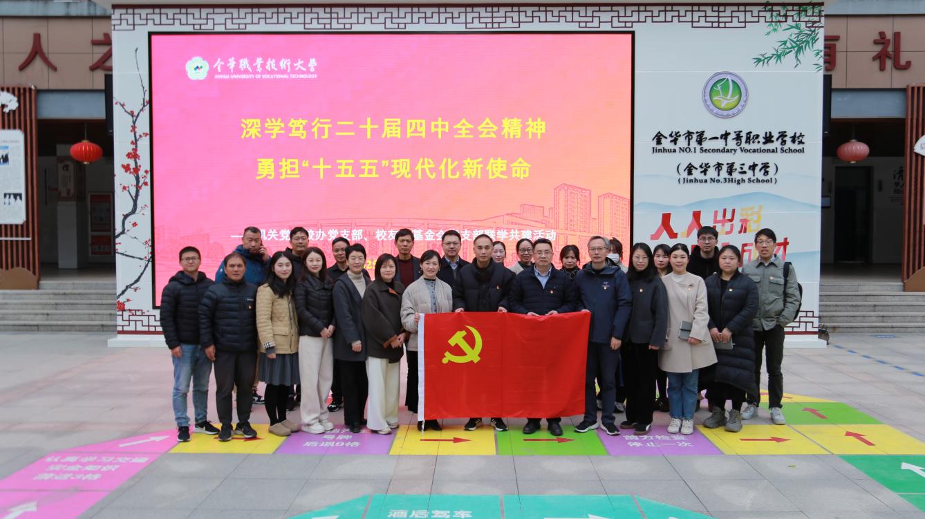 12月5日,为深入学习贯彻党的二十届四中全会、省委十五届八次全会精神,学校机关校办党支部、校友会基金会党支部赴金华市第一中等职业学校开展联学共建活动。市第一中等职业学校党委书记吴文军、校长方婧陪同,双方围绕党建工作、办学特色等内容展开深入研讨。